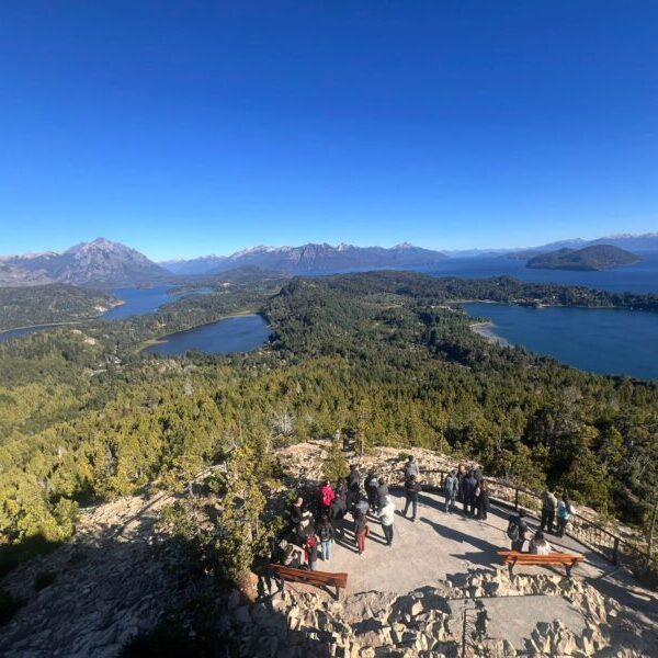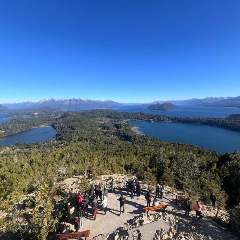 📍 Uno de los momentos destacados es la visita al Cerro Campanario, donde de forma opcional podés subir en aerosilla hasta los 1.050 metros de altura. Desde la cima, disfrutarás de vistas impresionantes a los lagos, cerros y bosques patagónicos, además de una confitería con una de las mejores postales de la región. 🏔️☕